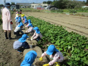 たんぽぽさんの畑で、大切の育てていただいたサツマイモを1歳児~5歳児のクラスで掘りに行きました。先ずは、管理をしてくださった田村さんさんから芋掘りの説明を受けます。 しっかりお話を聞いたら、さぁ~いよいよお芋掘り!緑地公 […]