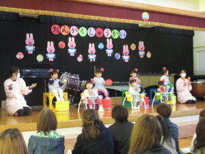 12月19日(金)に音楽集会を開催いたしました。 1歳児はトマトちゃん、2歳児はトトロになって可愛らしく手遊び歌や打楽器を使って歌いました。 3歳児からは、メロディオン演奏があります。指の使い方や音の位置がわかるようにな […]