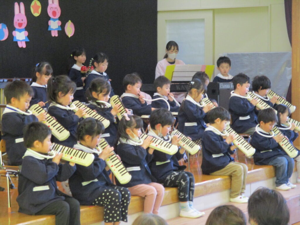 3歳児からは、メロディオン演奏があります。指の使い方や音の位置がわかるようになりました。