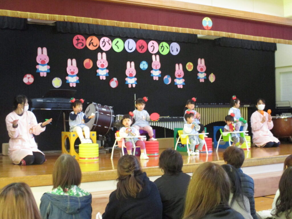 4歳児・5歳児クラスは、いろんな楽器を使い演奏をしました!素敵な演奏や歌に涙を流す方もいらっしゃいます。
