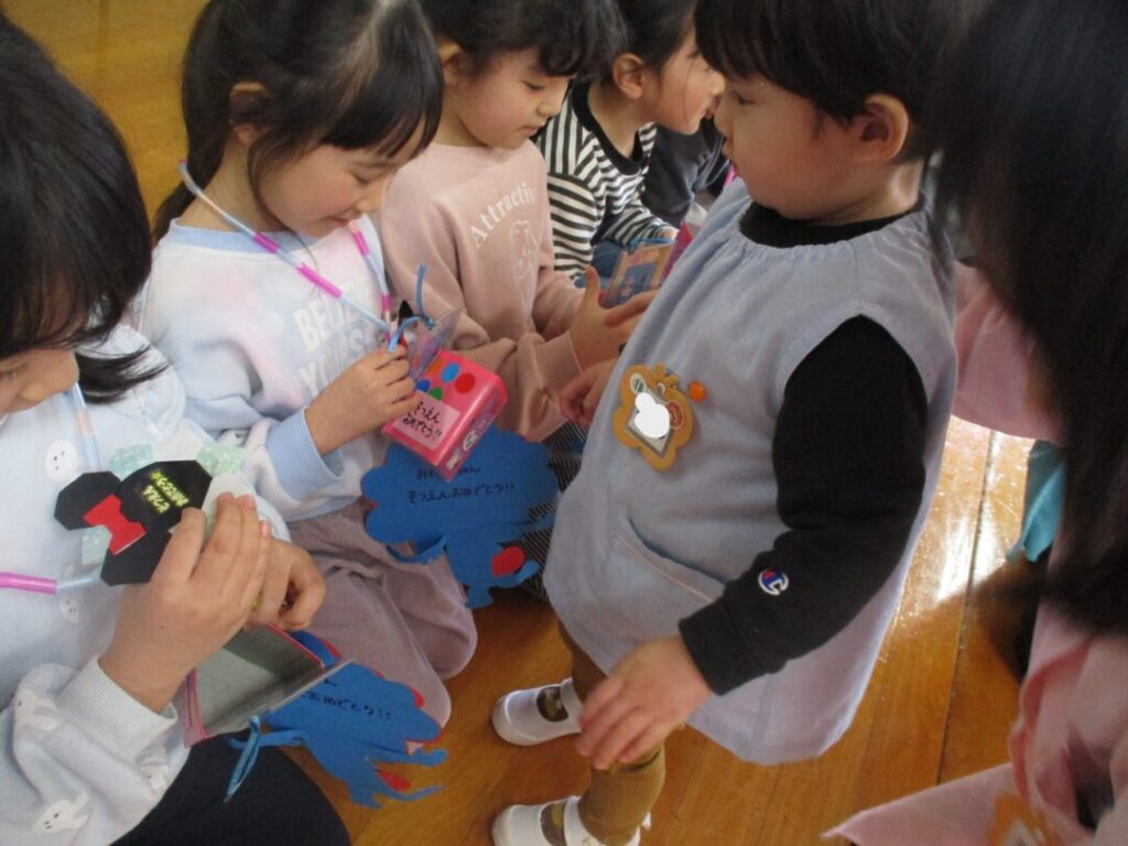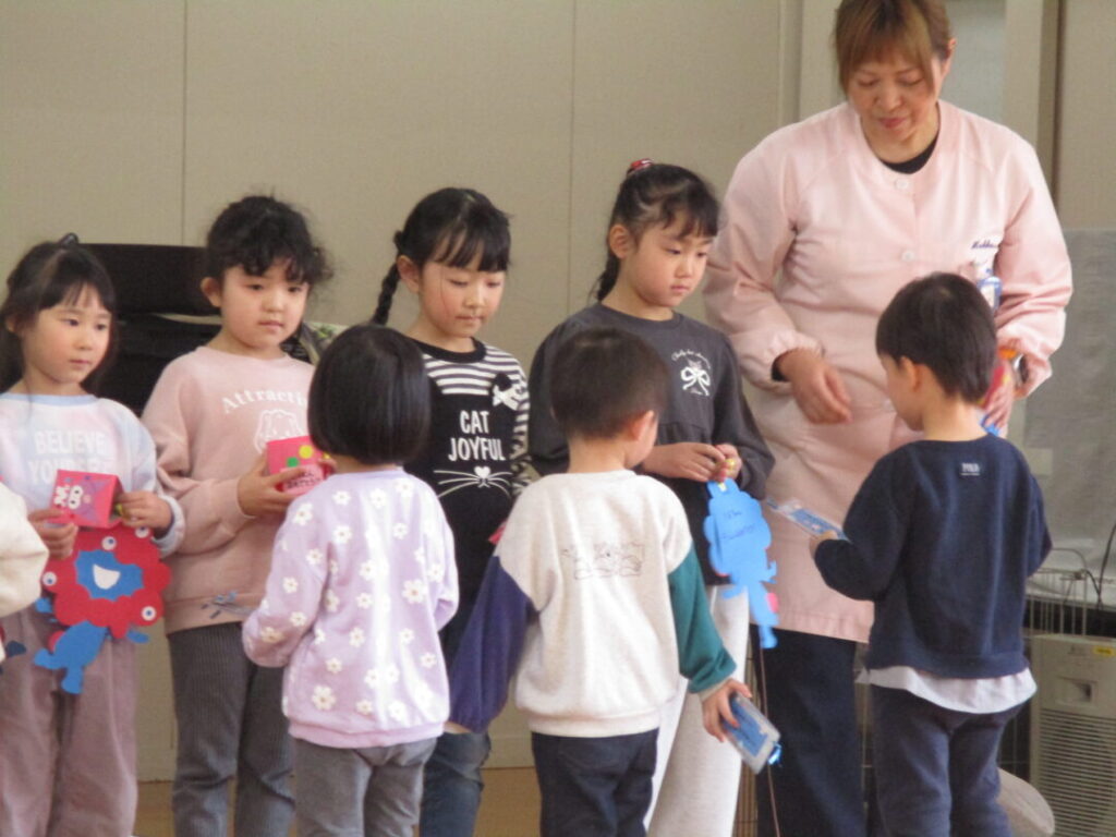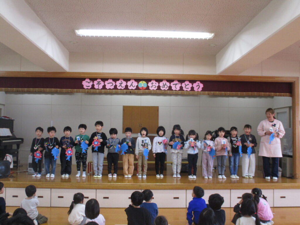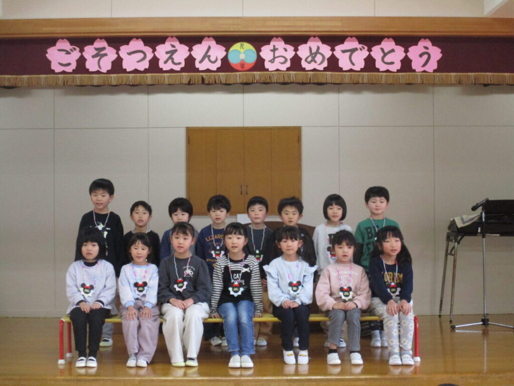 3月25日㈬の第56回卒園式が行われました。元気いっぱい、おしゃべり大好きなクラスでしたが、しっかりと将来の夢をご両親に伝え卒園証書を受け取り、立派に成長した姿を見せてくれました。当日のお写真ではないですが、先に行われたお別れの会で在園児からプレゼントをもらいお礼に「ね!」を歌った映像を載せますね!とっても素敵な歌で感動しました!少々周りの園児の声が入りますがご了承ください。また、通信料がかかりますのでWi-Fi環境の無い方は、お気を付けくださいね。